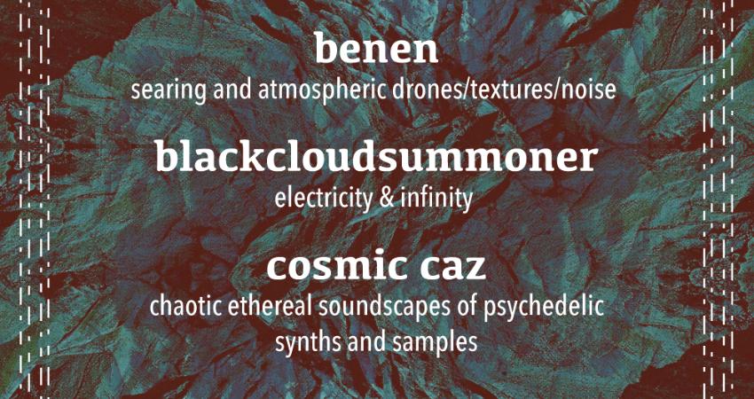 Cosmic Caz, Brighton and London based electronic musician and producer, takes your senses on a journey through the sounds of the cosmic realms. Cosmic Caz creates an immersive atmosphere of chaotic ethereal soundscapes layered with distorted vocals drenched in delay. Rattling drums, psychedelic synths and squelching field recordings provide for a pleasant sensory experience.