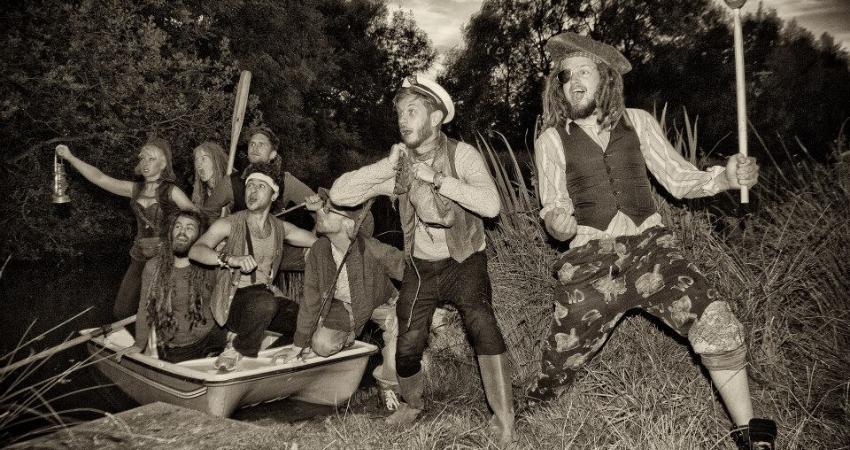 Nautical rockers Seas Of Mirth have been causing quite the ruckus at shows and festivals across UK and Europe for the last five years or so. A nine-strong crew with a varying sound incorporating folk instrumentation, prog-rock silliness, worldly rhythms and bizarre sea-based song concepts. Seas of Mirth have played Glastonbury Festival, Secret Garden Party, Boomtown Fair, the main stage at Beat Herder Festival, Bearded Theory, Alchemy Festival, Edinburgh Fringe and a barrel-full of other summer shindigs. Their new album "Hark, The Headland Approacheth" came out this summer on Nottingham's I'm Not From London label. Think