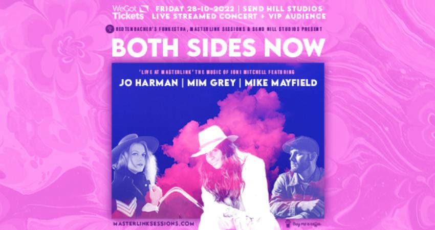 Get yourself this very special VIP ticket to 'Both Sides Now' - The music of Joni Mitchell. A live-streamed concert in front of a small audience. Performed by the MASTERLINK SESSIONS ALL-STARS featuring artists MIM GRAY | JO HARMAN | MIKE MAYFIELD.
