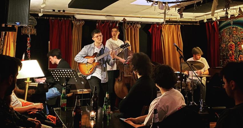 Led by guitarist and composer Karim Saber, who is steadily building a profile as a performer on the domestic and European scenes, this dynamic ensemble combines fiery extended improvisation with memorable original compositions. Featuring some of the most exciting young musicians in the UK (all of whom met whilst studying at the Royal Academy of Music), this group's first performance at the Oxford Tavern takes place ahead of their debut album recording (scheduled for Winter 2022).