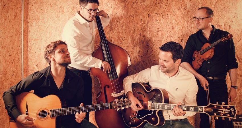 Often described as ‘the finest gypsy jazz in the Cotswolds’, Swing from Paris are a UK quartet of violin, guitars and double bass. Inspired by the great swing bands of the 1930s and 40s, they present their own versions of music by Gershwin, Piazzolla, John Lewis,Django Reinhardt and Stéphane Grappelli. They’ve been seen on the BBC’s Hairy Bikers, and have appeared at major jazz festivals including Cheltenham, Brecon and the Django Reinhardt Festival at Samois sur Seine. Expect stylish jazz and vintage swing.