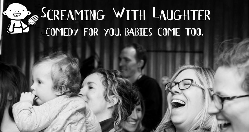We are back ! Screaming with laughter is London's Original Lunch time comedy club where babies can come too, making tired parents laugh since 2011. See top comedy from TV and the comedy circuit without having to book a baby sitter . Show time now starts at 12.30 - till 2pm., doors are open 12 to get you and your little one settled for a night out but in the day. Please note buggies must be left in the designated parking area and can not be kept by your side due to space and health and safety for you . So if your baby is due to nap we recommend you bring a car seat which can be kept with you or a sling . Please feel free to feed , change, stand with your baby acts are v respectful - A baby crying is nothing compared to a rowdy Saturday stag or hen do gig !