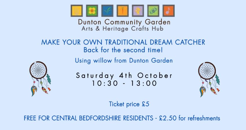Join us in our open barn in the Dunton Garden for an authentic dream catcher workshop using willow hoops grown in the garden.