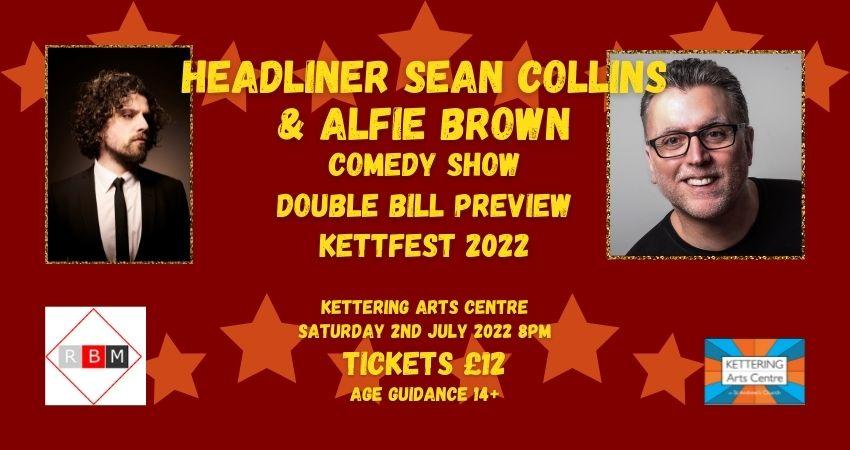 To celebrate KETTFEST 2022, Kettering Arts Centre and RBM Comedy present a Double Bill Preview Comedy Show ahead of the Edinburgh Festival with opener ALFIE BROWN and Headliner SEAN COLLINS!