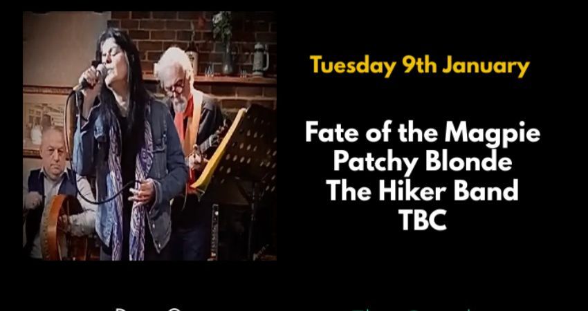 The line up for the New Music Tuesday Showcase at The Couch, Bracknell on 9th January will feature acoustic trio Fate of the Magpie, The Hiker Band, singer and songwriter Patchy Blonde and one more act to be confirmed, starting at 8pm, admission is £5.00.